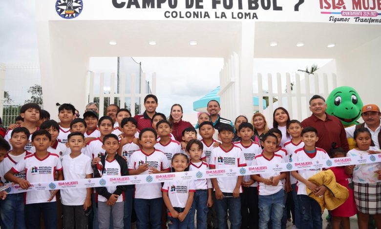 Isla Mujeres, Quintana Roo, a 18 de marzo de 2026.— Cumpliendo su compromiso de seguir transformando la Zona Continental, la Presidenta Municipal, Atenea Gómez Ricalde, inauguró la primera cancha de fútbol 7 en la colonia La Loma de Ciudad Mujeres, una obra histórica que fortalece la infraestructura deportiva en esta zona del municipio.