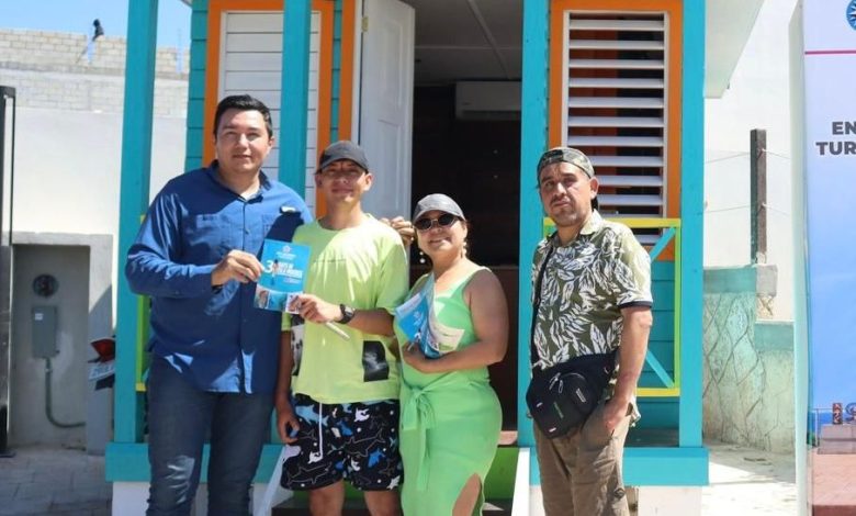 Durante el día, el espacio opera como módulo de atención turística, donde visitantes pueden recibir orientación e información sobre actividades, atractivos y servicios en la isla.